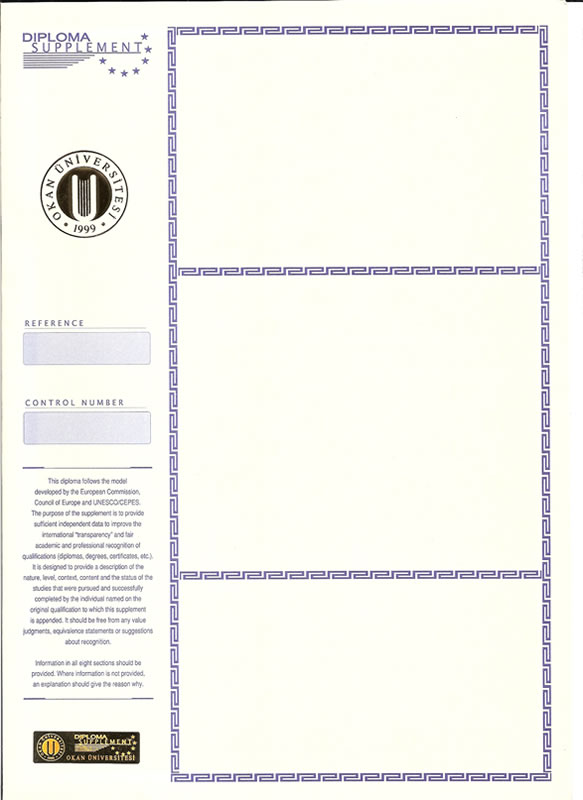 - PEK Kağıt Diploma Supplement Okan Üniversitesi