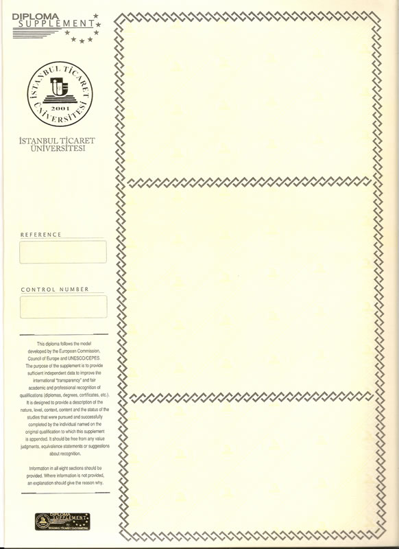 - PEK Kağıt Diploma Supplement İstanbul Ticaret Üniversitesi